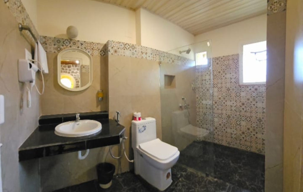 Enjoy the romantic ambience provided by this double sharing room with a king-sized bed.